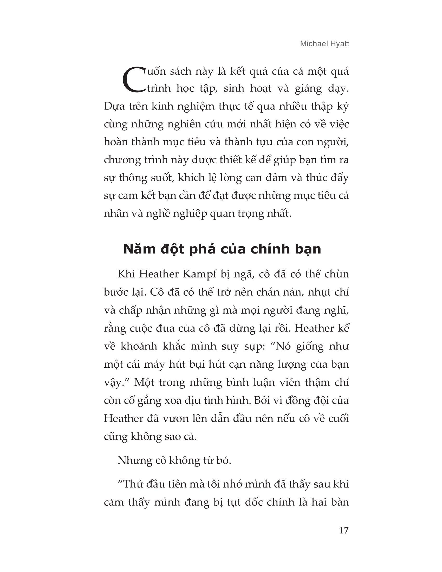 Cuốn sách này là kết quả của cả một quá trình học tập, sinh hoạt và giảng dạy của tác giả. Dựa trên kinh nghiệm thực tế qua nhiều thập kỷ cùng những nghiên cứu mới nhất hiện có về việc hoàn thành mục tiêu và thành tựu của con người, cuốn sách sẽ giúp bạn tìm ra sự thông suốt, khích lệ lòng can đảm và thúc đẩy sự cam kết bạn cần để đạt được những mục tiêu cá nhân và nghề nghiệp quan trọng nhất.