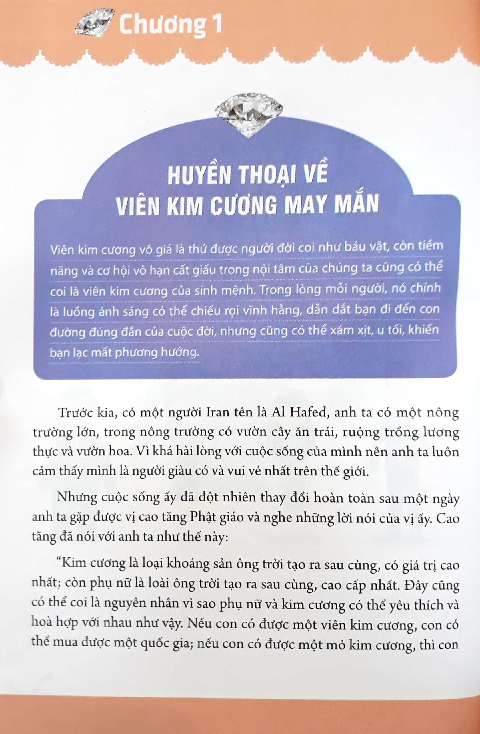Viên kim cương vô giá là thứ được người đời coi như báu vật, còn tiềm năm và cơ hội vô hạn cất giấu trong nội tâm của chúng ta cũng có thể coi là viên kim cương của sinh mệnh. Trong lòng mỗi người, nó chính là luồng ánh sáng có thể chiếu rọi vĩnh hằng, dẫn dắt bạn đi đến con đường đúng đắn của cuộc đời, nhưng cũng có thể xám xịt, u tối, khiến bạn lạc đường mất phương hướng.