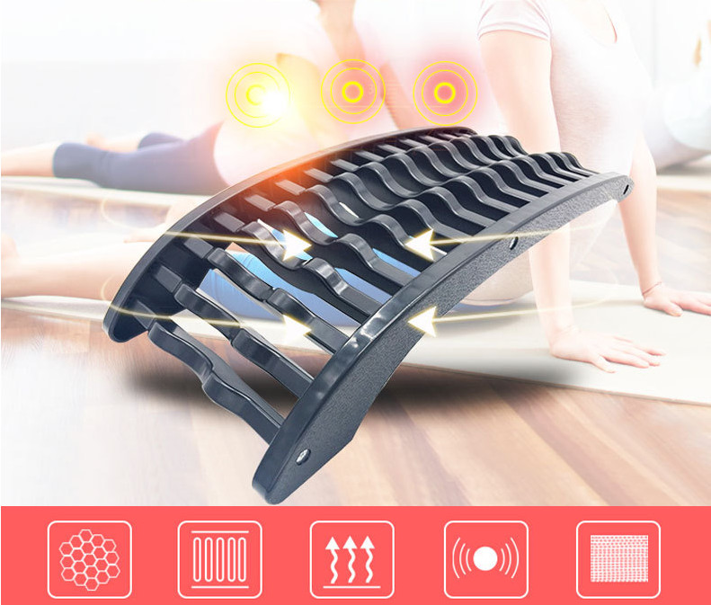 Thông số kỹ thuật Cân nặng: 1kg Kích thước: Chiều dài 37cm; Chiều rộng 25cm Dụng cụ tập lưng giảm đau cột sống Chất liệu: Nhựa cao cấp Tại phần đế: Có nhiều nấc để tăng giảm chiều cao của dụng cụ tập lưng theo nhu cầu người sử dụng. Các điểm gài được gia cố chắc chắn bằng các móc nhựa chắc chắn Miếng nhựa tiếp xúc với phần lưng có thêm các gợn sóng điều hòa trên bề mặt, nhằm tạo sự thoải mái cho người dùng.
