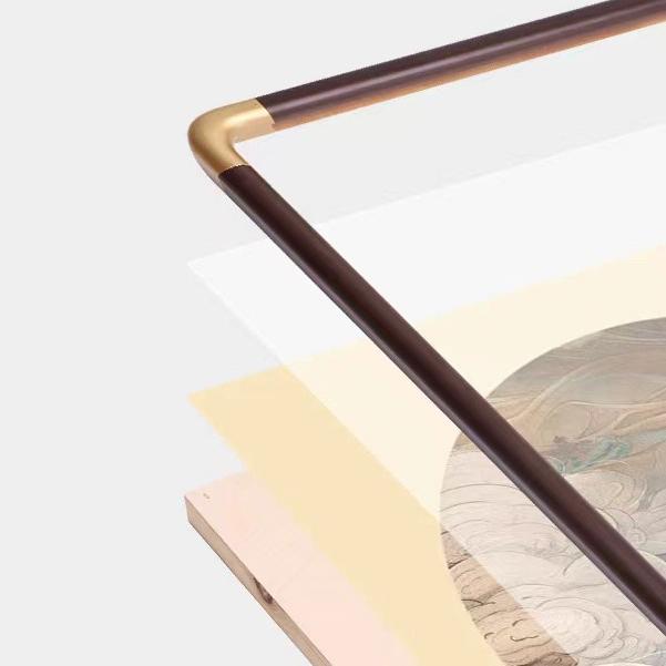 Khung treo tranh thuỷ mặc, thư pháp trang nhã, phù hợp thẩm mỹ, Chất liệu khung gỗ bo 4 góc tròn bằng nhựa tổng hợp sơn màu nhũ đồng sang trọng. Bộ khung gồm có
