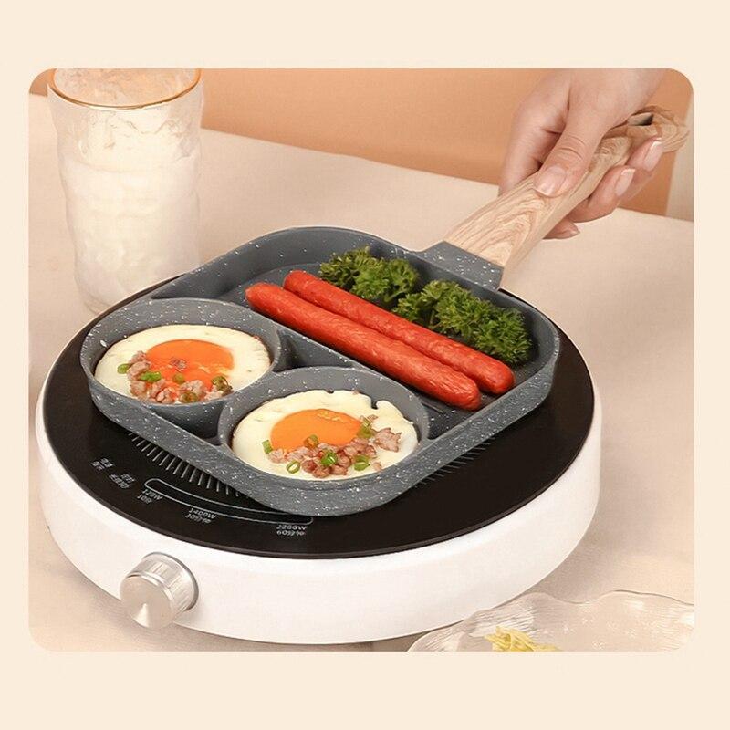 Khuôn Chảo Chiên Rán Trứng Làm Bánh 2 Ngăn 3 Lỗ Chống Dính- Chống Dính Tay Cầm Gỗ