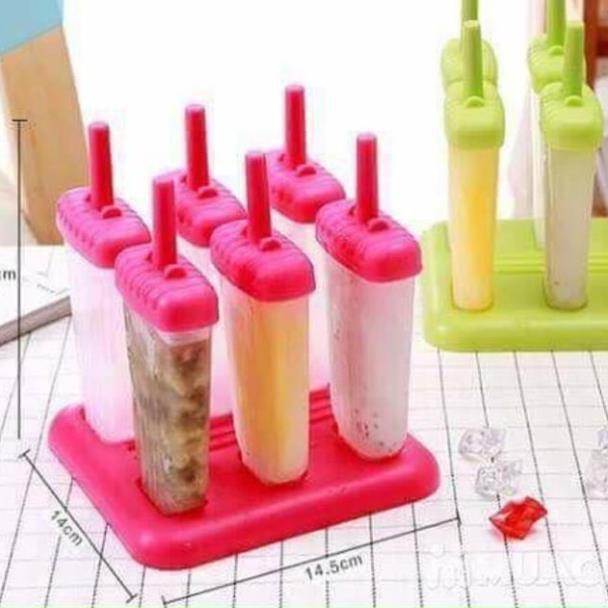 • Bộ khuôn kem que gồm 6 ngăn này giúp bạn dễ dàng thực hiện được món kem đá lạnh thật nhanh chóng và đẹp mắt. Mỗi ngăn kem đều có phần que nhựa giúp bạn dễ dàng nhấc được kem ra khỏi khuôn sau khi đã đông đá cứng.
