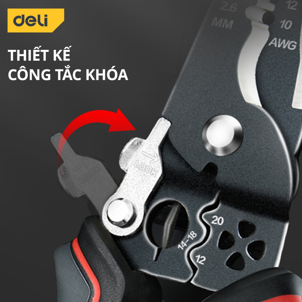 DELI TOOLS OFFICIAL STORE   Kìm Bấm Dây Điện Deli Chính Hãng - Thép Cao Cấp, Điều Chỉnh Lực Tuốt Dây Dễ Dàng   ️ Mã sản phẩm: DL2609