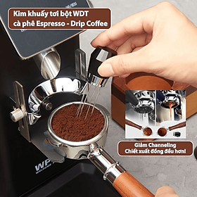 Kim đánh tơi bột cà phê WDT sẽ rất hữu ích giúp cho việc phân bổ đồng đều cà phê bột bên trong, chống bị bón cục.