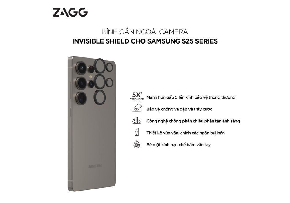✨Kính Camera ZAGG Camera InvisibleShield Dành Cho Galaxy S25 Ultra Kèm Khung Dán Chống Trầy Xước, Chống Va Đập_ Hàng Chính Hãng