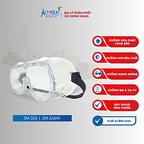 Kính bảo hộ chống hóa chất 3M 334AF Mắt kính chống đọng sương, chống tia UV, bảo vệ mắt
