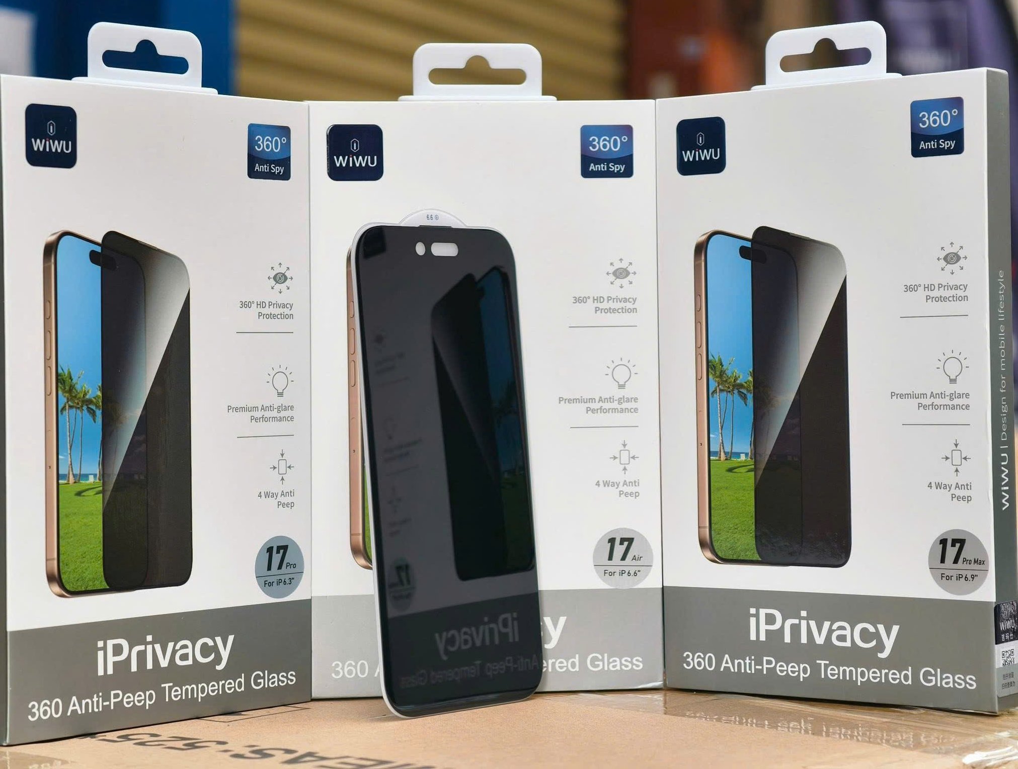 Kính cường lực chống nhìn trộm 4 chiều cho iPhone 17 Pro Max / 17 Pro / 17 Air / 17 hiệu WI WU Privace 360 Kính chống nhìn trộm 360 độ là sản phẩm