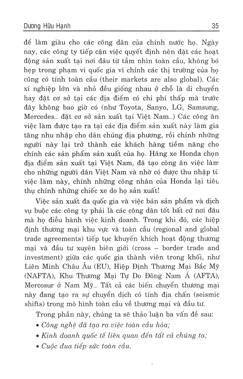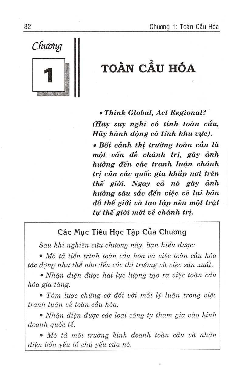 Kinh Doanh Quốc Tế - Thách Thức Của Cạnh Tranh Toàn Cầu Nội dung quyển sách Kinh Doanh Quốc Tế - Thách Thức Của Cạnh Tranh Toàn Cầu gồm các chương liên hệ sau: Chương 1: Toàn cầu hóa Chương 2: Các mối quan hệ giữa doanh nghiệp và chính quyền Chương 3: Lý thuyết thương mại quốc tế Chương 4: Hội nhập kinh tế khu vực (Regional economic integration) Chương 5: Thị trường hối đoái Chương 6: Hệ thống tiền tệ quốc tế IMS Chương 7: Đầu tư trực tiếp nước ngoài (Foreign Direct Investment: FDI) Chương 8: Các chiến lược xuất và nhập khẩu (Export and Import Strategies) Chương 9: Chiến lược và tổ chức quốc tế (International Strategy And Organization).