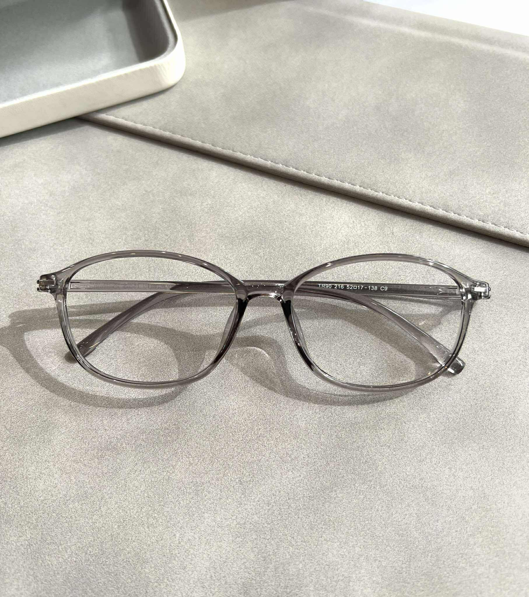 Kính gọng nhựa dẻo siêu bền Hàn Quốc dáng mắt bầu màu xám trong cao cấp