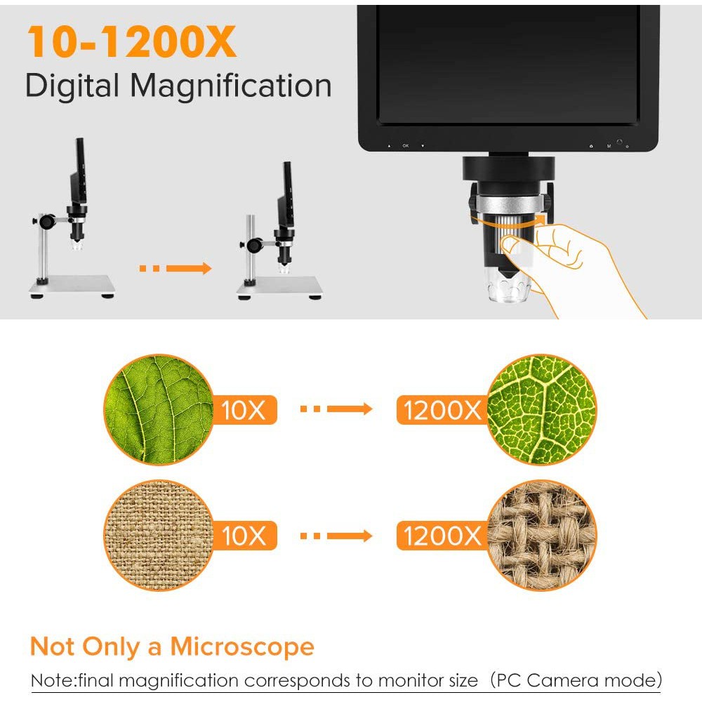 Kính hiển vi kỹ thuật số HD: có thể điều chỉnh độ phóng đại từ 0 đến 1200X, kích thước cầm tay nhỏ gọn và dễ vận hành.