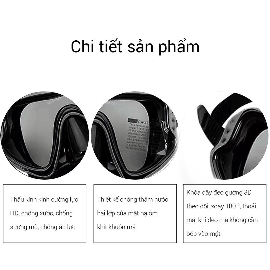 Kính lặn ống thở với 2 van ngăn nước 100%, mặt nạ lặn với mắt kính cường lực cao cấp THÀNH NAM