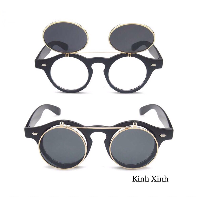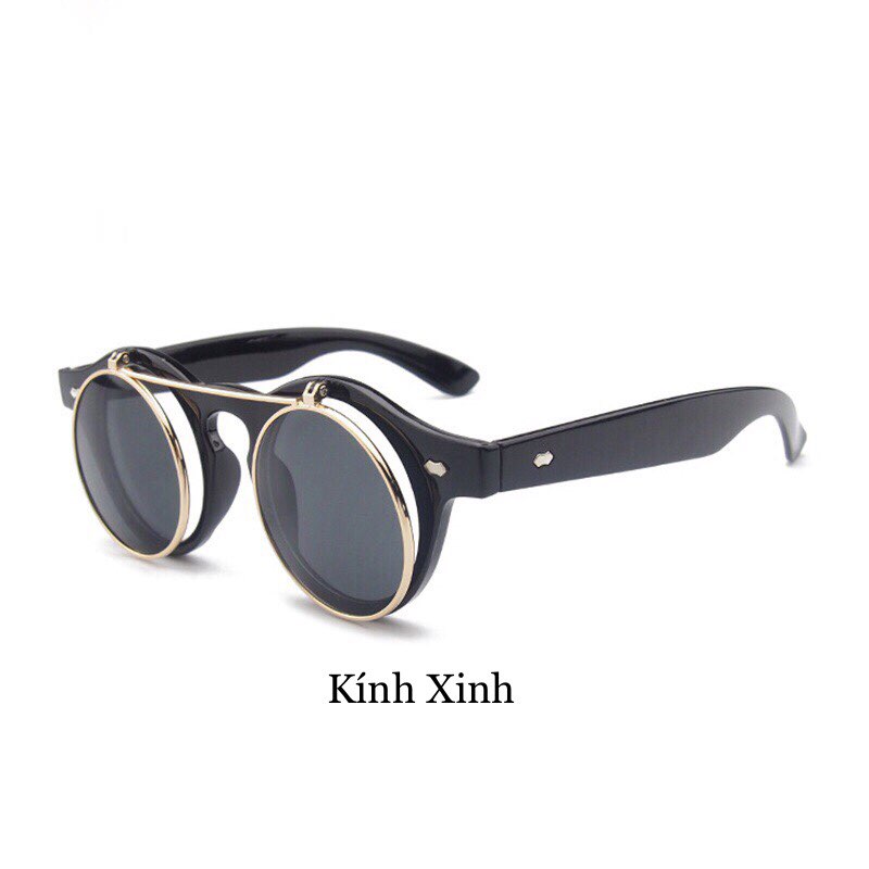 Kính Râm/Kính Mát 2 Tròng Mở Nắp Dáng Tròn Retro Đi Ngày Và Đêm Tiện Lợi Kính mắt thiết kế đa năng tiện lợi, phù hợp đeo đi cả Ngày và Đêm để bảo vệ mắt. Tròng kính có tác dụng chống nắng, chống lóa Uv. Thiết kế gọng dáng mắt tròn năng động, dễ đeo cho mọi dáng khuôn mặt. Dáng mắt tròn unisex phù hợp cho cả nam và nữ. Bộ sản phẩm gồm : 1 kính mắt tròn tròng trắng + mắt tròn tròng râm đen lật bên ngoài.