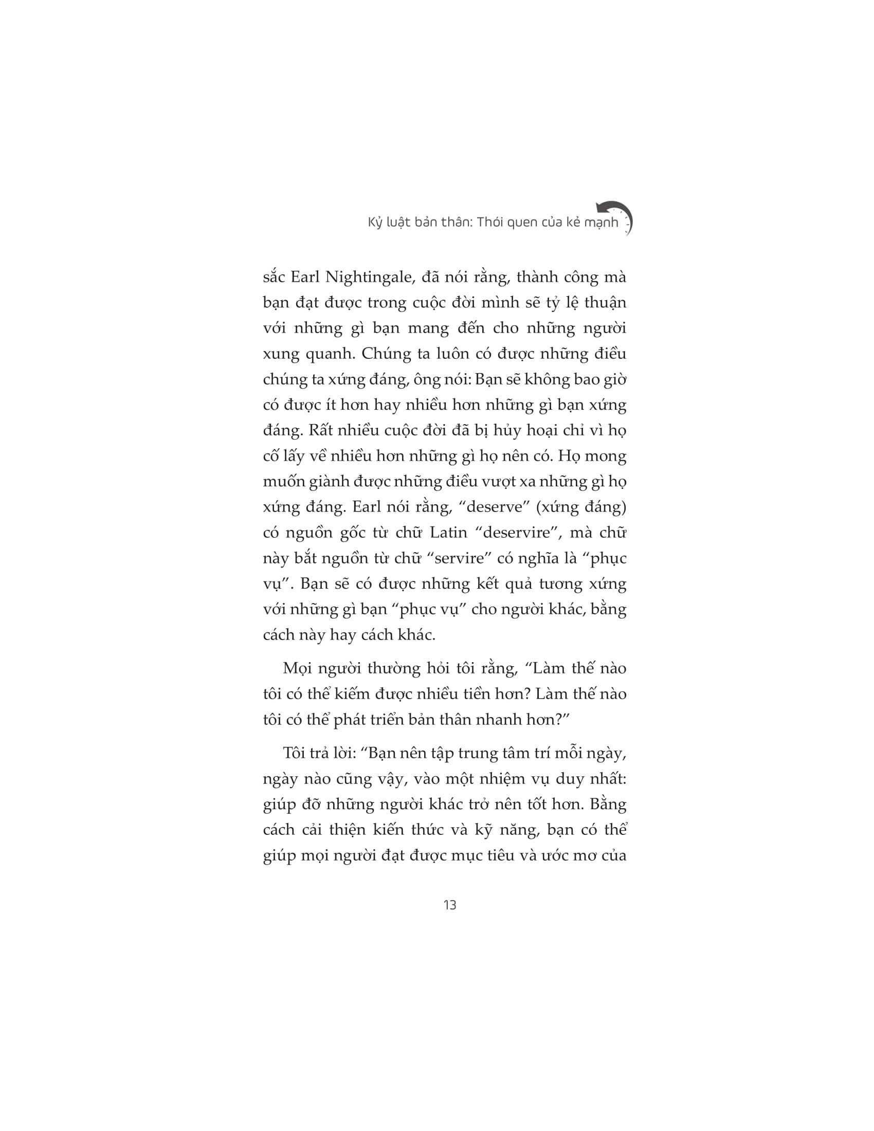 Với “Kỷ luật bản thân: Thói quen của kẻ mạnh”, Brian Tracy giúp chúng ta điều chỉnh lại tư duy và giải quyết tình trạng mất tập trung bằng nhiều phương pháp, cũng như hướng dẫn bạn cách dồn năng lượng vào những nhiệm vụ quan trọng nhất để hoàn thành công việc một cách nhanh chóng và hiệu quả.