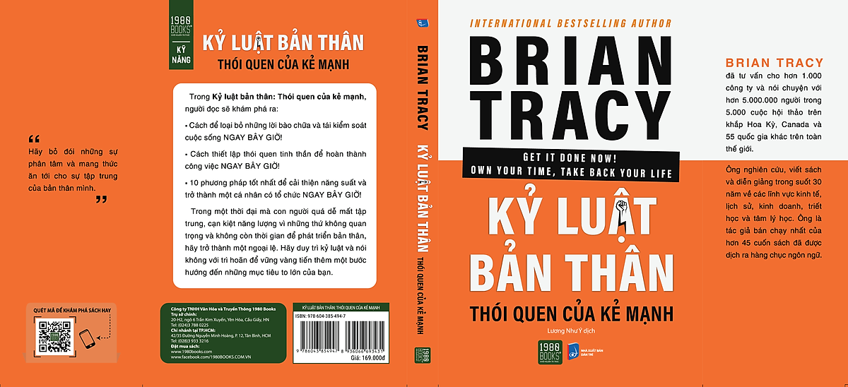 Tác giả: Brian Tracy Người dịch: Lương Như Ý THÔNG TIN XUẤT BẢN: Kích thước khổ: 13x19 Số Trang: 308 Mã EAN: 8936066693431 NXB liên kết: NXB Dân Trí Sách do Công ty 1980 BOOKS mua bản quyền và ấn hành quý IV/2022 KỶ LUẬT BẢN THÂN THÓI QUEN CỦA KẺ MẠNH Duy trì năng suất tối ưu trong thế giới hiện đại là một công việc đầy thử thách. Vì ta đang phải đối mặt với quá nhiều yếu tố gây sao nhãng và mất tập trung, với “sự tấn công” không ngừng nghỉ của các loại tin nhắn, thông báo, quảng cáo, tin tứ từ điện thoại thông minh và Internet tốc độ cao. Những yếu tố này có vẻ quan trọng đối với thành công và hạnh phúc của chúng ta, nhưng trên thực tế, chúng chỉ khiến cuộc sống của ta thêm phức tạp và đẩy chúng ta lệch xa khỏi mục tiêu của mình. Với “Kỷ luật bản thân: Thói quen của kẻ mạnh”, Brian Tracy giúp chúng ta điều chỉnh lại tư duy và giải quyết tình trạng mất tập trung bằng nhiều phương pháp, cũng như hướng dẫn bạn cách dồn năng lượng vào những nhiệm vụ quan trọng nhất để hoàn thành công việc một cách nhanh chóng và hiệu quả. Trong cuốn sách này, bạn sẽ khám phá ra: • Cách để loại bỏ những lời bào chữa và tái kiểm soát cuộc sống của bạn NGAY BÂY GIỜ! • Cách thiết lập thói quen tinh thần để hoàn thành công việc NGAY BÂY GIỜ! • 10 phương pháp tốt nhất để cải thiện năng suất và trở thành một cá nhân có tổ chức NGAY BÂY GIỜ! • Cùng nhiều thủ thuật năng suất khác để nhanh chóng thăng tiến trong sự nghiệp. Trong một thời đại mà con người quá dễ mất tập trung, cạn kiệt năng lượng vì những thứ không quan trọng và không còn thời gian để phát triển bản thân, hãy trở thành một ngoại lệ. Hãy duy trì kỷ luật, nói không với trì hoãn, hành động nhanh chóng và hành động ngay bây giờ, để vững vàng tiến thêm một bước hướng đến những mục tiêu to lớn của bạn. Có một câu nói nổi tiếng: “Hãy bỏ đói những sự phân tâm và mang thức ăn tới cho sự tập trung của bản thân mình.” Đây cũng chính là ý tưởng hoàn hảo để các bạn bắt đầu đọc cuốn sách này.