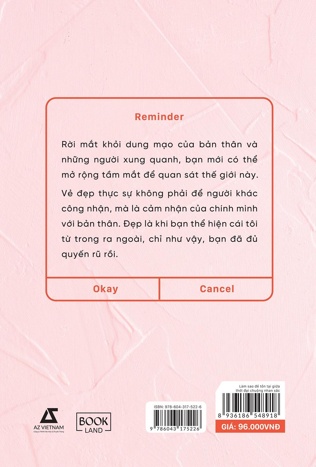 Nếu bạn là một người thiếu may mắn chưa có được nhan sắc nổi bật, vậy chúng ta sẽ làm thế nào để tồn tại được giữa thời đại này? Bằng văn phong nhẹ nhàng, sâu lắng, “Làm thế nào để tồn tại trong thời đại chuộng nhan sắc” chính là một chiếc chìa khóa, giúp bạn thức tỉnh lại nhận thức, làm mới lại tư duy và đem đến cho bạn một góc nhìn hoàn toàn khác về quan niệm cái đẹp trong thời đại 4.0.