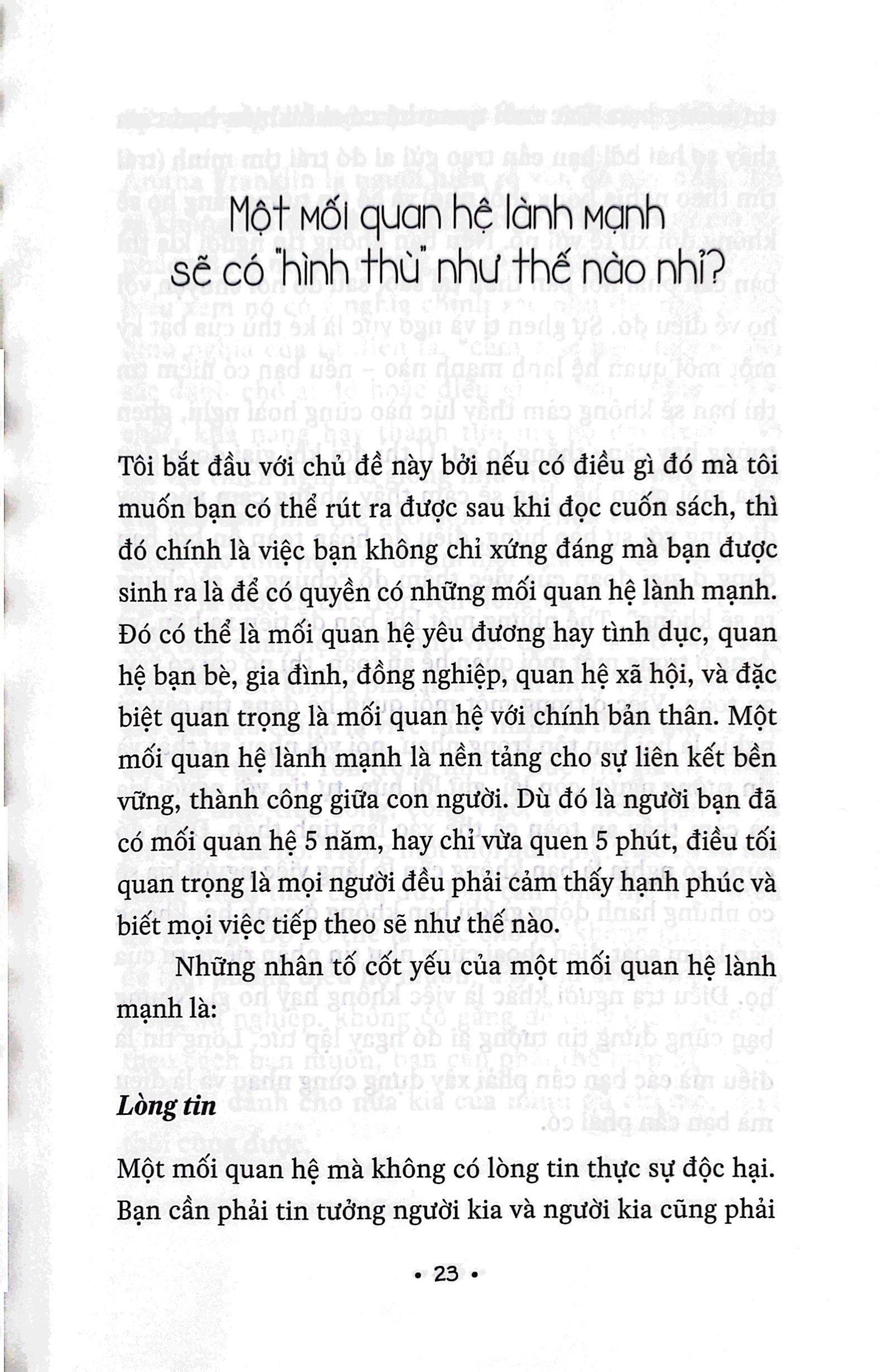 Chuyện giới tính, hẹn hò, những mối quan hệ, việc tự khám phá và chấp nhận bản thân không phải lúc nào cũng giản đơn. Không ai dám khẳng định m.ình hoàn hảo và hiểu hế về những vấn đề đó. Giáo dục giới tính và các mối quan hệ là thứ ta phải học và thực hành, không chỉ tự học mà còn học hỏi liên tục từ người khác, nguồn khác, những nơi có sự chia sẻ cởi mở, thấu hiểu, mang tính thực tiễn và khoa h ọc. Và bạn sẽ tìm thấy những điều đó trong cuốn sách này!