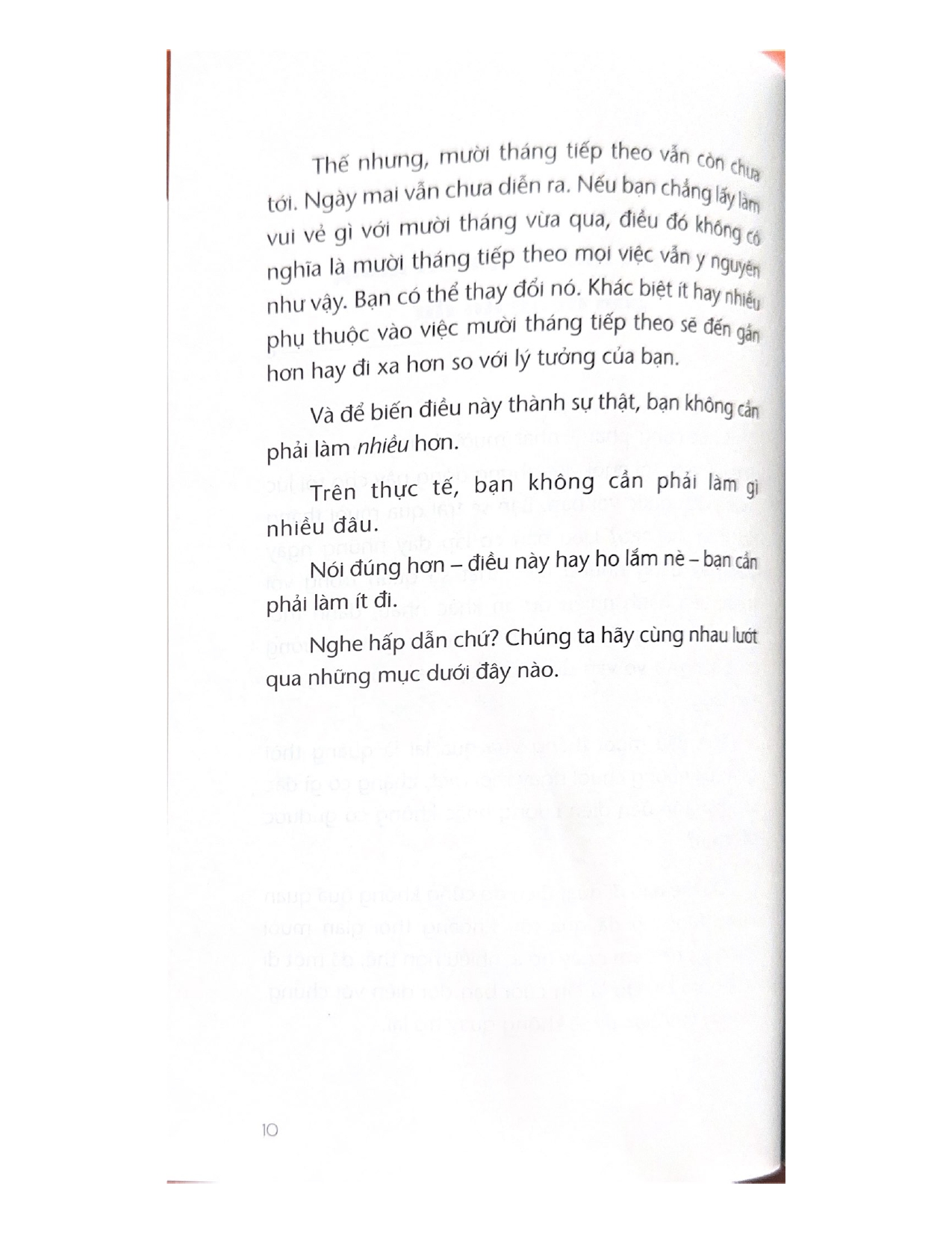 Với nhiều lời khuyên, chiến lược và bài tập hữu ích, LÀM ÍT ĐƯỢC NHIỀU sẽ giúp bạn từ bỏ những việc vặt vãnh, tốn thời gian vô ích để tập trung vào những gì thực sự quan trọng với mình. Khi biết cách làm ít đi, bạn sẽ có nhiều thời gian hơn, bớt âu lo hơn, làm việc tốt hơn, và quan trọng nhất là, có thể sống cuộc đời mà bạn mong muốn.