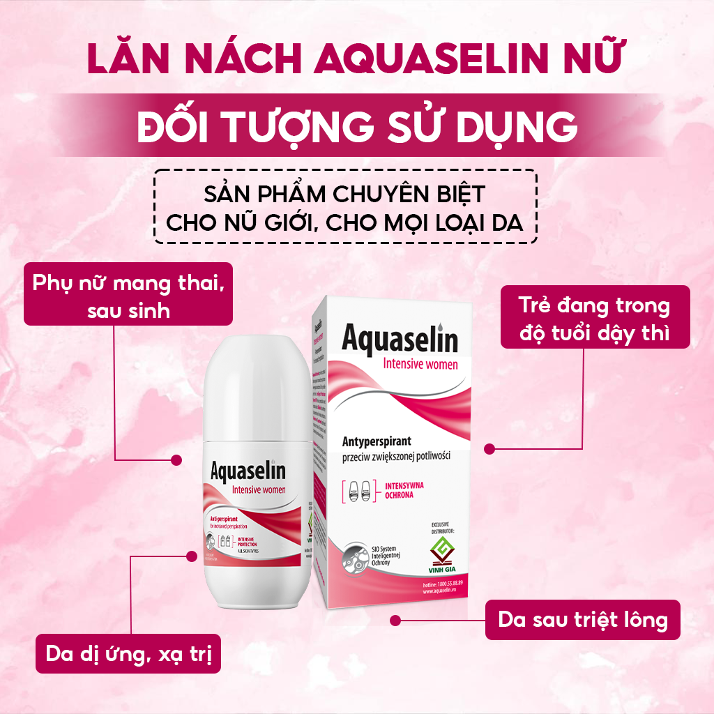 - Lăn khử mùi hôi vùng nách Aquaselin cho nữ giúp giảm tiết mồ hôi và khử mùi mồ hôi khó chịu, giúp vùng nách luôn khô thoáng và ngăn ngừa hôi nách.