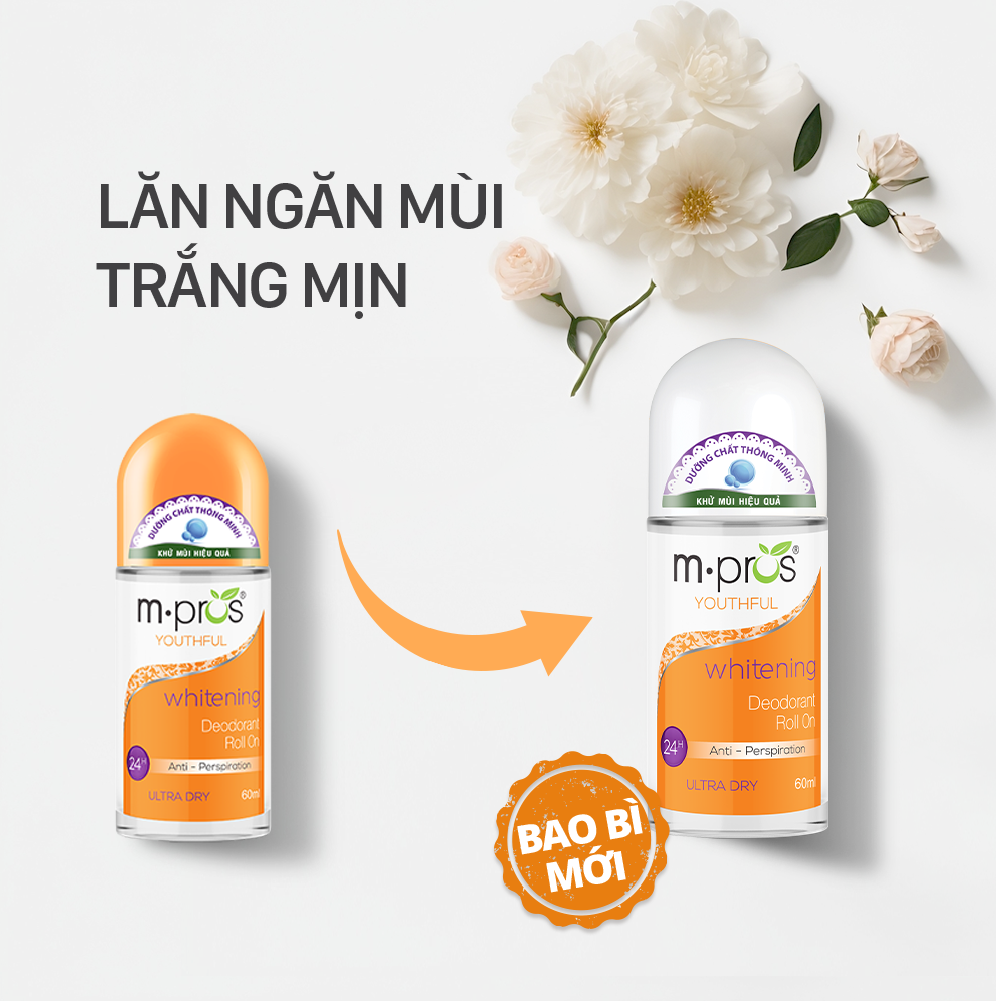 Lăn khử mùi hương nước hoa M.Pros là mùi hương mới trong bộ sưu tập lăn khử mùi M.Pros Whitening. Với hương thơm tươi mới, ngọt ngào cùng khả năng kháng khuẩn, ngăn ngừa tiết