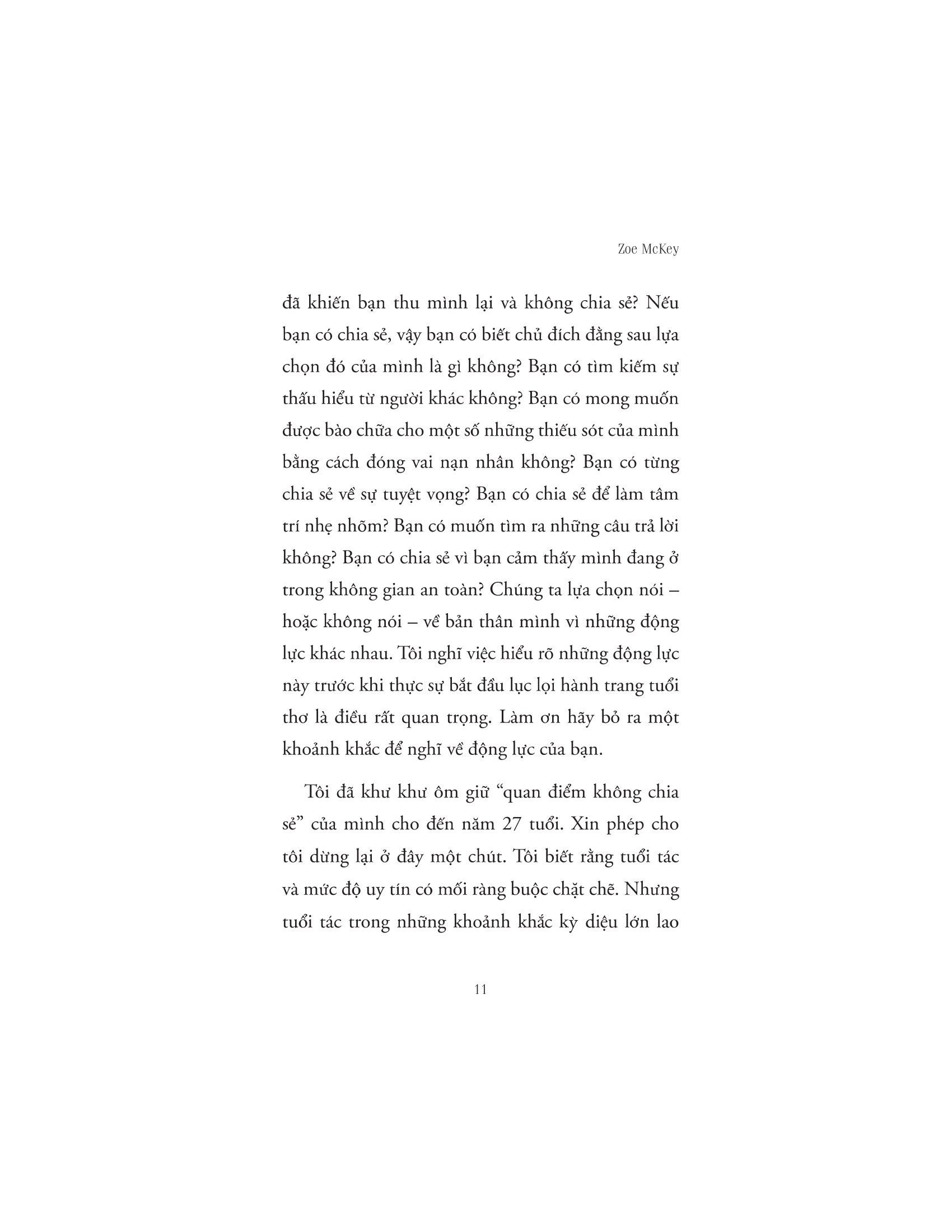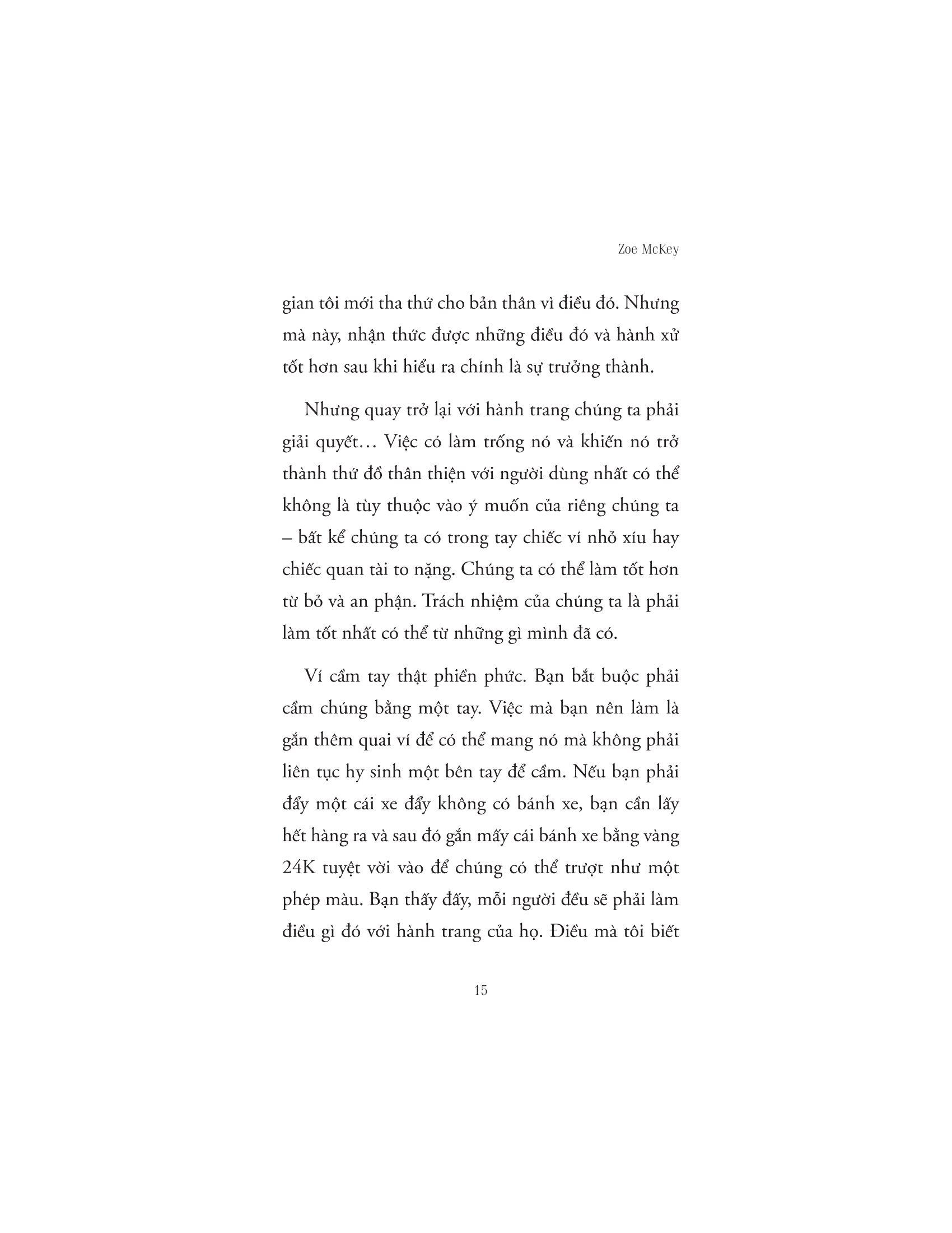 Trong thời gian vài năm trở lại đây, Zoe McKey bắt đầu viết lách, tập trung cho tình yêu cuộc sống và chia sẻ nó lại qua những cuốn sách. Những diễn giải của Zoe McKey trong sách sẽ giúp bạn đọc tìm ra được lý do để họ sống theo cách của riêng m.ình, luôn có một lời giải thích cho hành vi của bạn mà chính bạn cũng không nhận ra. Đọc sách Zoe McKey sẽ giúp bạn khai phá trí óc và hành động theo một cách mới để không ngừng tốt hơn trong cuộc sống.