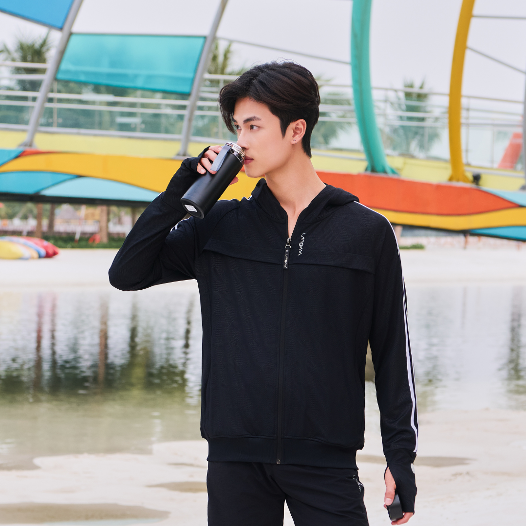 Thiết kế tối ưu chống nắng với tay áo xỏ ngón, mũ áo, cổ áo kéo cao