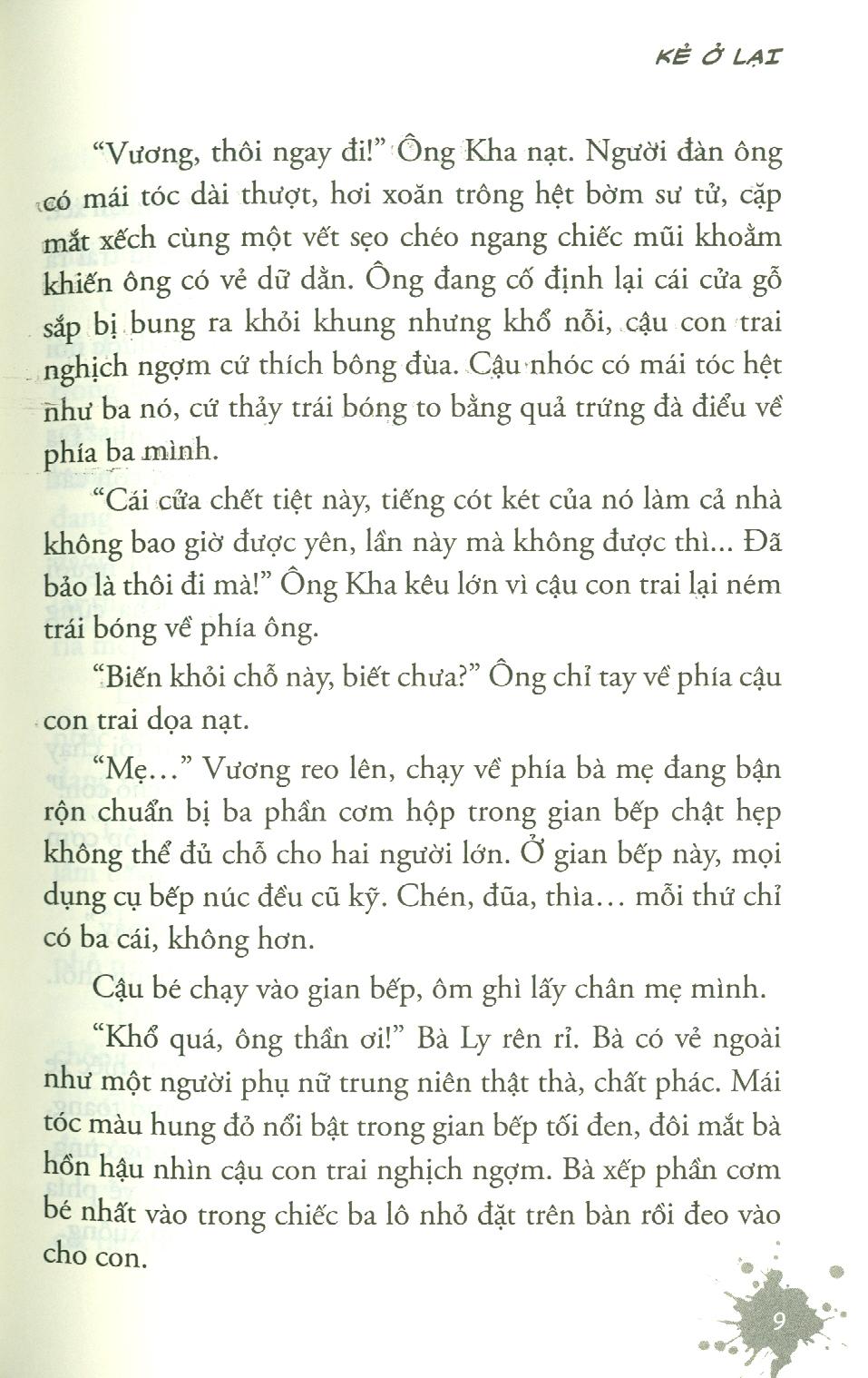 Họ sống trong căn nhà gỗ lụp xụp nhất làng. Mái nhà lợp ngói vốn màu đỏ cam nay đã chuyển sang màu đen xỉn, các cột chống xung quanh nhà sau nhiều năm bị mọt gặm đã mục nát, mất đi hình thù ban đầu, cánh cửa chính lỏng lẻo đến nỗi tưởng như nó sắp bị bung ra khỏi khung cửa đến nơi.