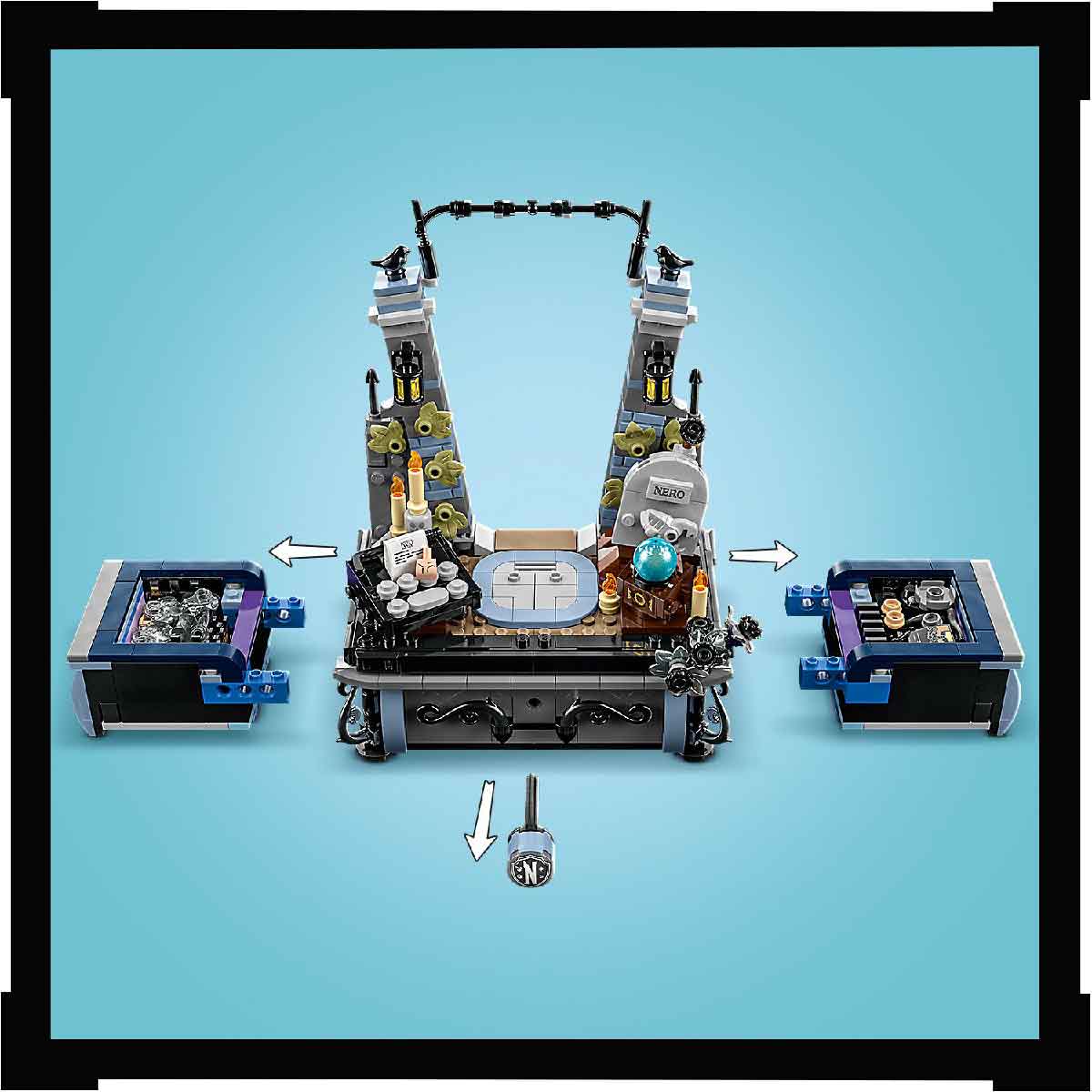 Bao gồm cổng Học viện Nevermore, ngăn kéo bí mật có khóa và nhiều phụ kiện đi kèm