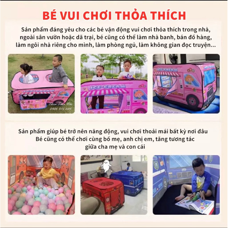 Mua tại TiktokMÔ TẢ SẢN PHẨM Là sản phẩm đáng yêu cho các bé vận động vui chơi thỏa thích trong nhà, ngoài sân vườn hoặc dã trại, bé cũng có thể làm nhà banh, bán đồ hàng, làm ngôi nhà riêng cho mình, làm phòng ngủ, làm không gian đọc truyện, đọc sách...