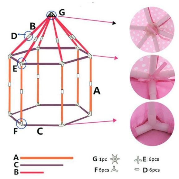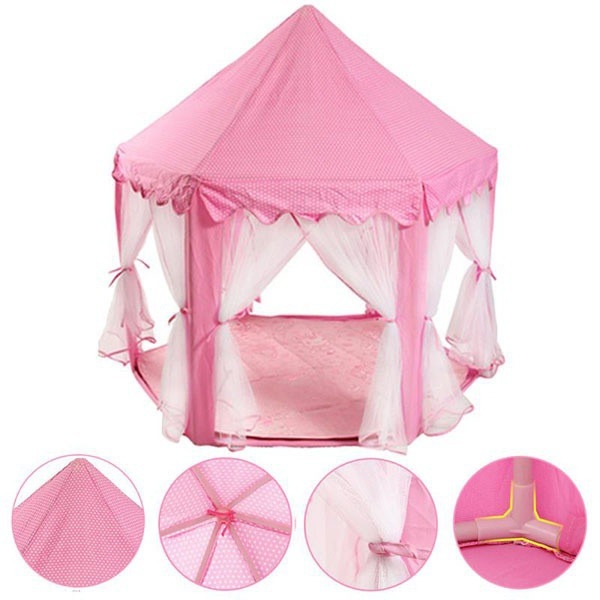 Đặc điểm của Lều Công Chúa Cho Bé Kiểu Dáng Lục Giác Hàn Quốc Có Rèm Che (Không bao gồm phụ kiện như: đèn, bóng,) - Màu sắc: Hồng và Xanh dương - Chất liệu: