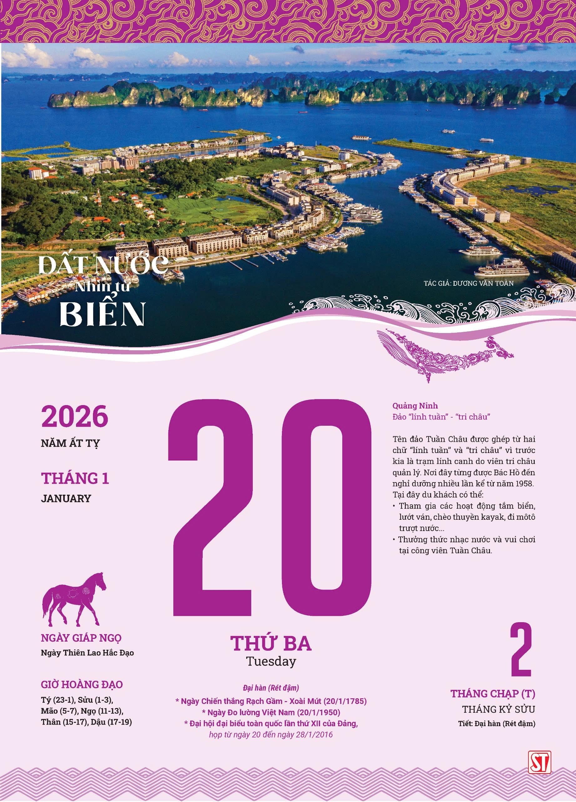 Lịch Blốc 2026 “Đất nước nhìn từ biển” Quy cách kỹ thuật KT: 25 x 35 cm - Giá: 400.000 - In 4 màu trên giấy couches 64gsm - Bìa in bằng công nghệ mới