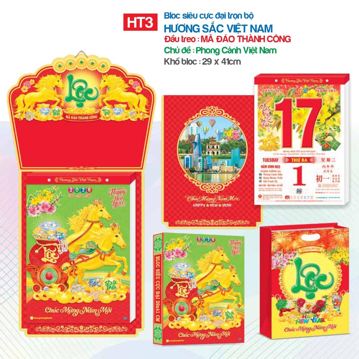 Lịch Bloc Siêu Cực Đại - Chủ Đề Phong Cảnh Việt Nam - Mã Đáo Thành Công - Hương Trang HT3 - Để tô điểm Tết cổ truyền Việt Nam, nét đỏ thắm trên những