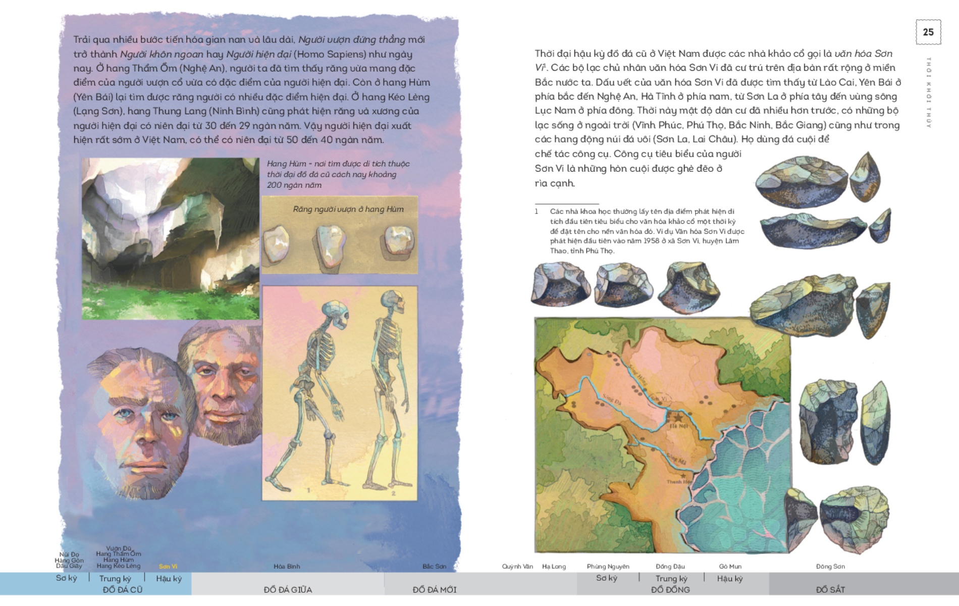 Lịch Sử Việt Nam Bằng Tranh - Thời Khởi Thủy (Bản Màu)   Hẳn không ít bạn trong chúng ta đã tự hỏi: Vào lúc nào trong thời khởi thủy xa xăm kia, con người trên mảnh đất Việt Nam đã hình thành và phát triển để trở thành con người như chúng ta bây giờ? Những người tối cổ ấy, tiền thân của tổ tiên chúng ta thuộc giống người nào và đã xuất hiện ở đâu trên đất nước tươi đẹp này? Họ sống và lao động ra sao? Các nhà khảo cổ học, nhân chủng học, các nhà nghiên cứu lịch sử đã có nhiều công trình nghiên cứu và đưa ra những kết luận và giả thiết thú vị. Chúng tôi sẽ sử dụng những thông tin và những câu chuyện ấy để đưa bạn vào cuộc hành trình đi qua các nền văn hóa Sơn Vi, Hòa Bình, Bắc Sơn, Quỳnh Văn, Phùng Nguyên, Đồng Đậu, Gò Mun, Đông Sơ, qua các thời kỳ đồ đá, đồ đồng và đồ sắt.