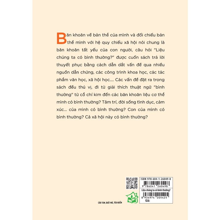 Thú vị và hoàn toàn thuyết phục, dẫn dắt vấn đề qua nhiều nguồn dẫn chứng, các công trình khoa học, các tác phẩm văn học, xã hội học... cuốn sách này sẽ giúp bạn đọc phần nào giải quyết được mối băn khoăn muôn thuở “Liệu chúng ta có bình thường?".