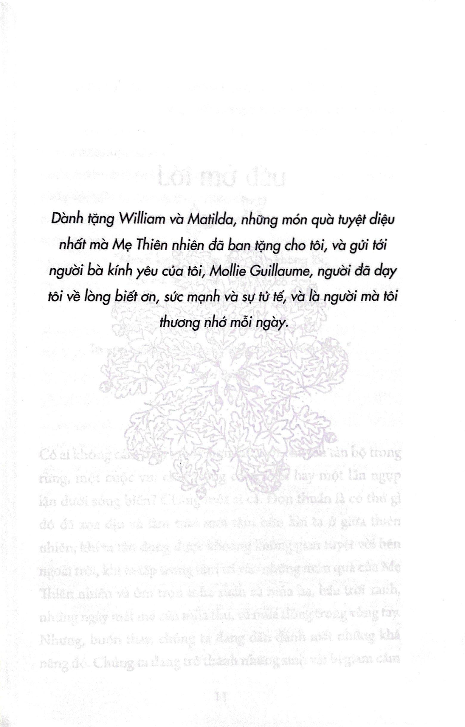 Học cách đưa thêm thiên nhiên vào cuộc sống không nên là một cuộc đua hay một thử thách; không có một dấu mốc nào mà bạn cần phải đánh, không có máy đếm bước chân, nhưng ta càng dâng hiến nhiều thời gian cho nó, qua thời gian, mối quan hệ sẽ càng có lợi. Liệu pháp Rừng chắc chắn không phải viết cho những người đàn ông ở nơi hoang dã, những cô gái chăn bò, những người leo núi, những người chèo thuyền vượt thác. Đây không phải cuốn sách dành cho những người nghiện andrenaline, người chạy thi, hay những con quỷ tốc độ - hay cho những hylophobic (những người có nỗi sợ với những cánh rừng), hiển nhiên rồi. Nhưng nó được viết cho những người tìm thấy bản thân mình trong tất cả những kiểu môi trường độc hại hay ngõ cụt và muốn sống tốt hơn. Những người sống ở đô thị sẽ cố gắng tranh cãi rằng không có nơi nào kết nối với thiên nhiên gần họ, nhưng họ nên nghĩ sáng tạo hơn. Những công viên, nông trại thành phố, bảo tàng, triển lãm hoặc địa điểm có dấu mốc lịch sử, nhà vườn hưu trí, và vân vân, bạn không cần phải có vườn quốc gia Yorkshire Moors hay Rừng Redwood để có thể du ngoạn, bạn có thể cảm nhận rừng ở bất kể chỗ nào có cây và có thời gian cũng như mục đích tốt.