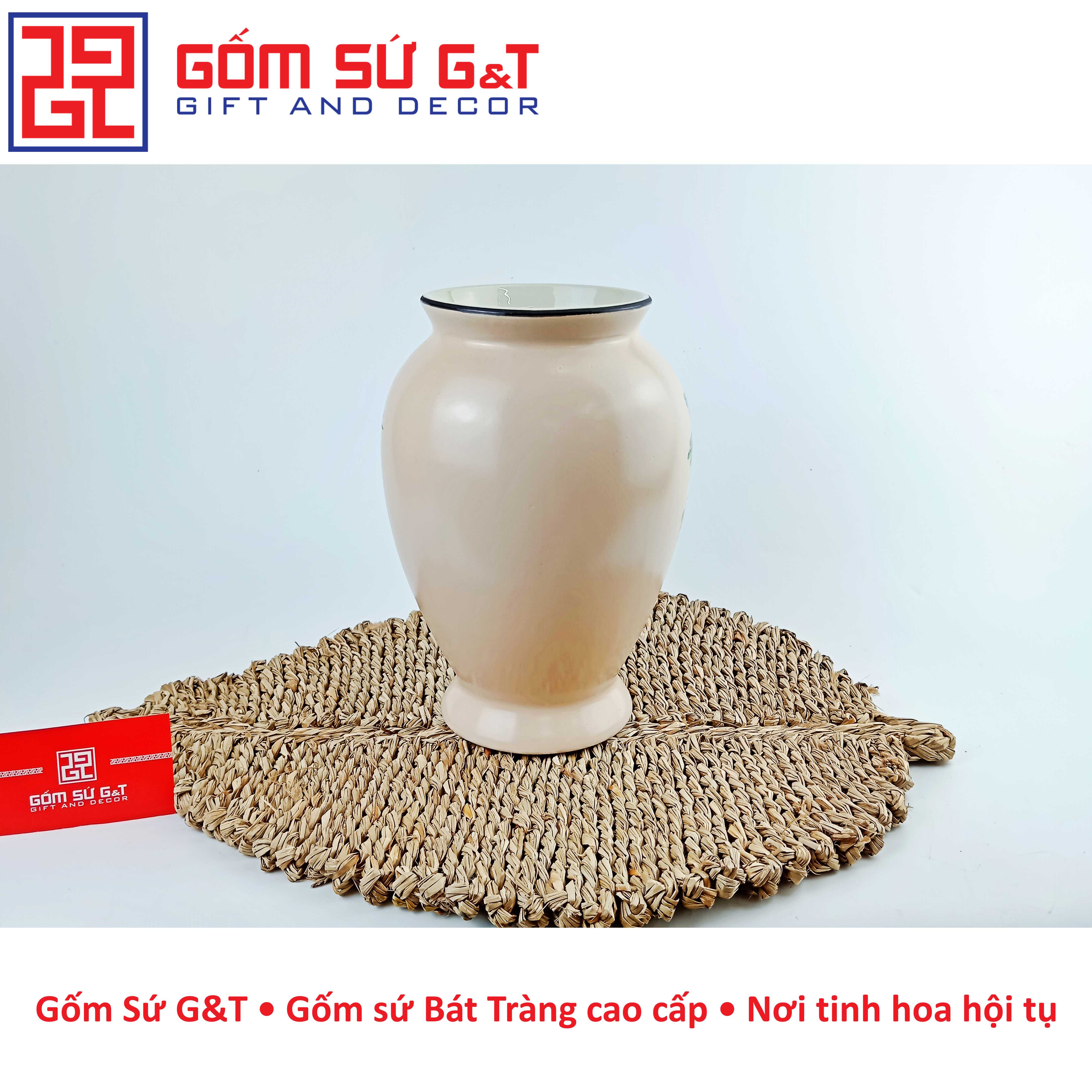 Bình hoa cao cấp Bát Tràng, hàng chuẩn loại 1, dáng chum họa tiết đắp nổi được thực hiện thủ công 100% bởi bàn tay lành nghề của các nghệ nhân làng nghề. Sản phẩm