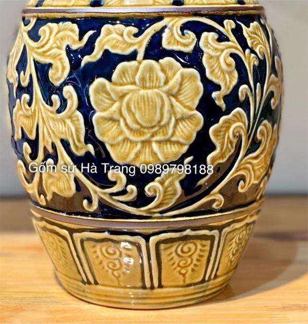 Bình hút lộc sơn mài vẽ hoạ tiết Gốm sứ Bát Tràng cao cấp Cao 24cm bụng rộng 22cm Giá 550k