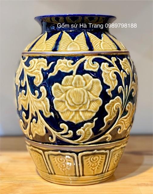 ✨Lọ hoa dáng vò khắc hoạ tiết nổi gốm sứ Bát Tràng cao cấp