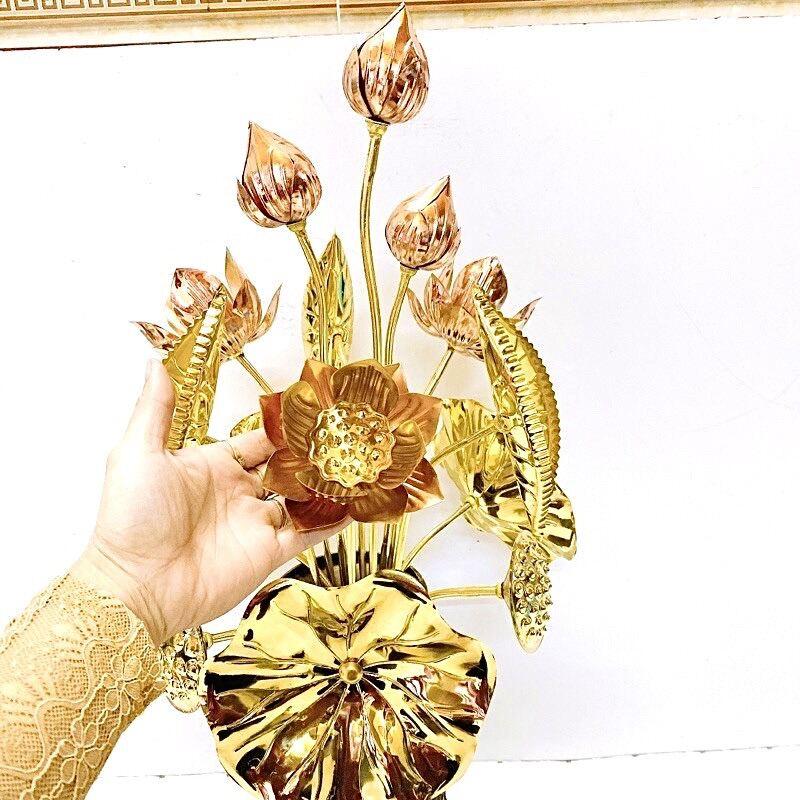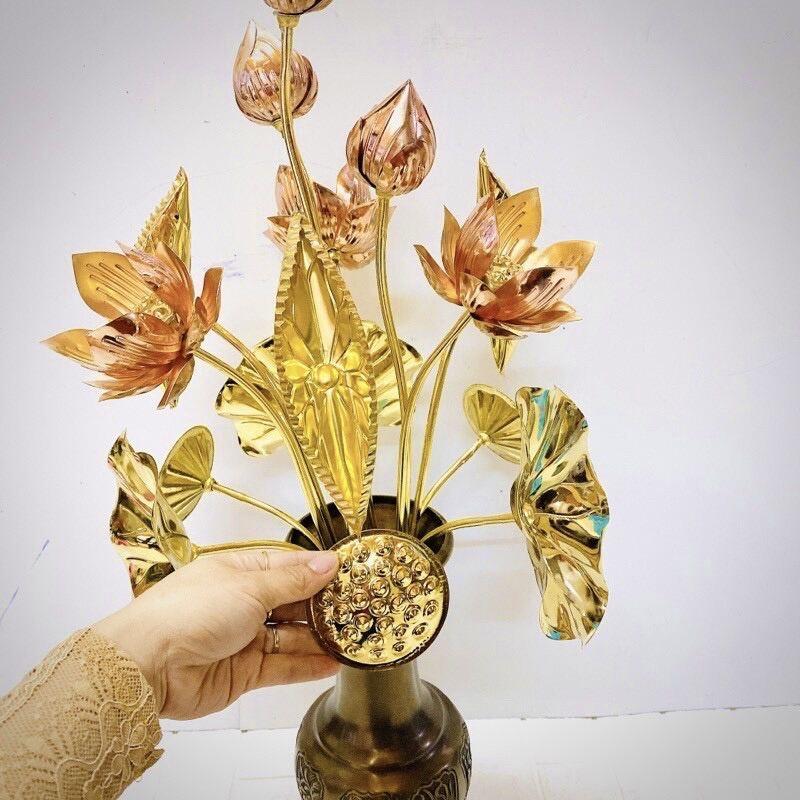 Lọ hoa sen đồng 18 bông cao 72 cm nặng 4 kg chất liệu bằng đồng n sdt. 0365260210
