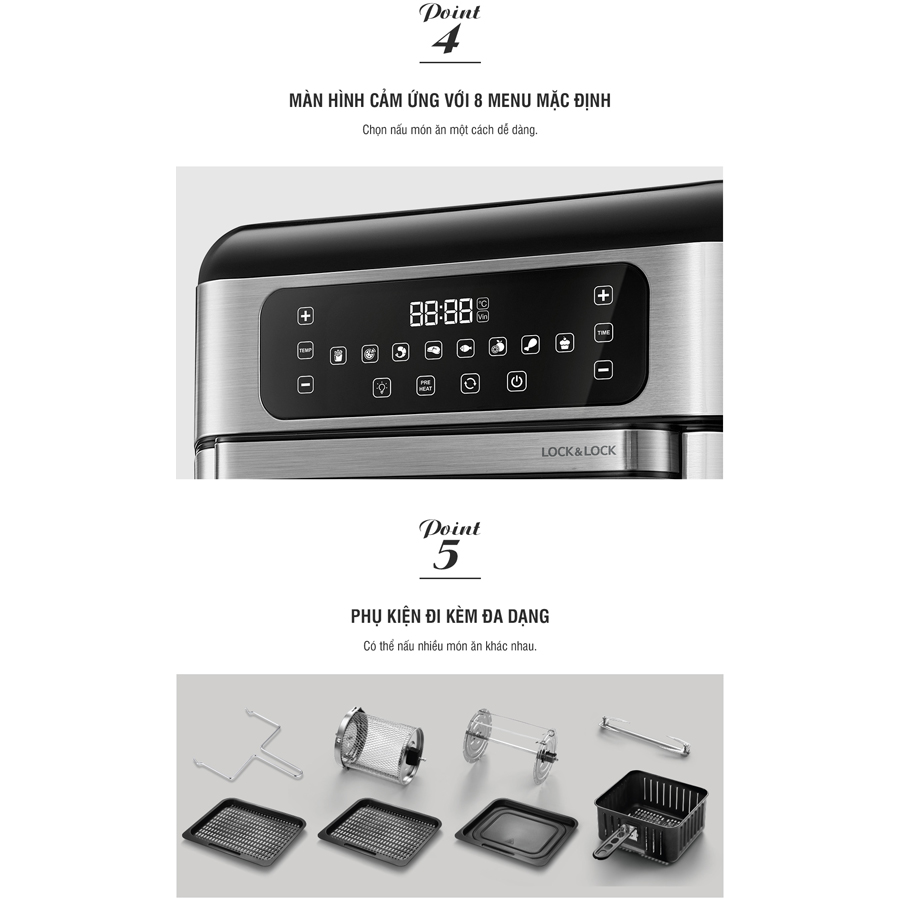 Lò chiên, nướng,sấy đa năng Lock&Lock Air Fryer Oven EJF291BLK 10L - Hàng chính hãng, bảo hành 24 tháng - JoyMall - Kích thước: 365 x 335 x 336 mm - Bảo hành 24 tháng