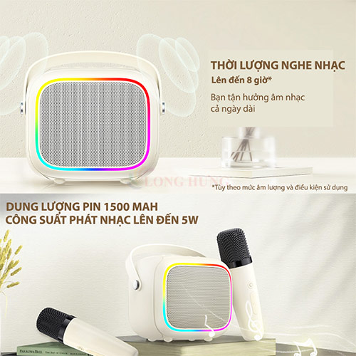Loa di động Soundmax Kids ( 2 màu Hồng và Xanh) : Hỗ trợ Bluetooth, USB, karaoke, AUX in, AUX out, đèn LED RGB. Tặng kèm 2 micro có dây hỗ trợ 12 hiệu ứng
