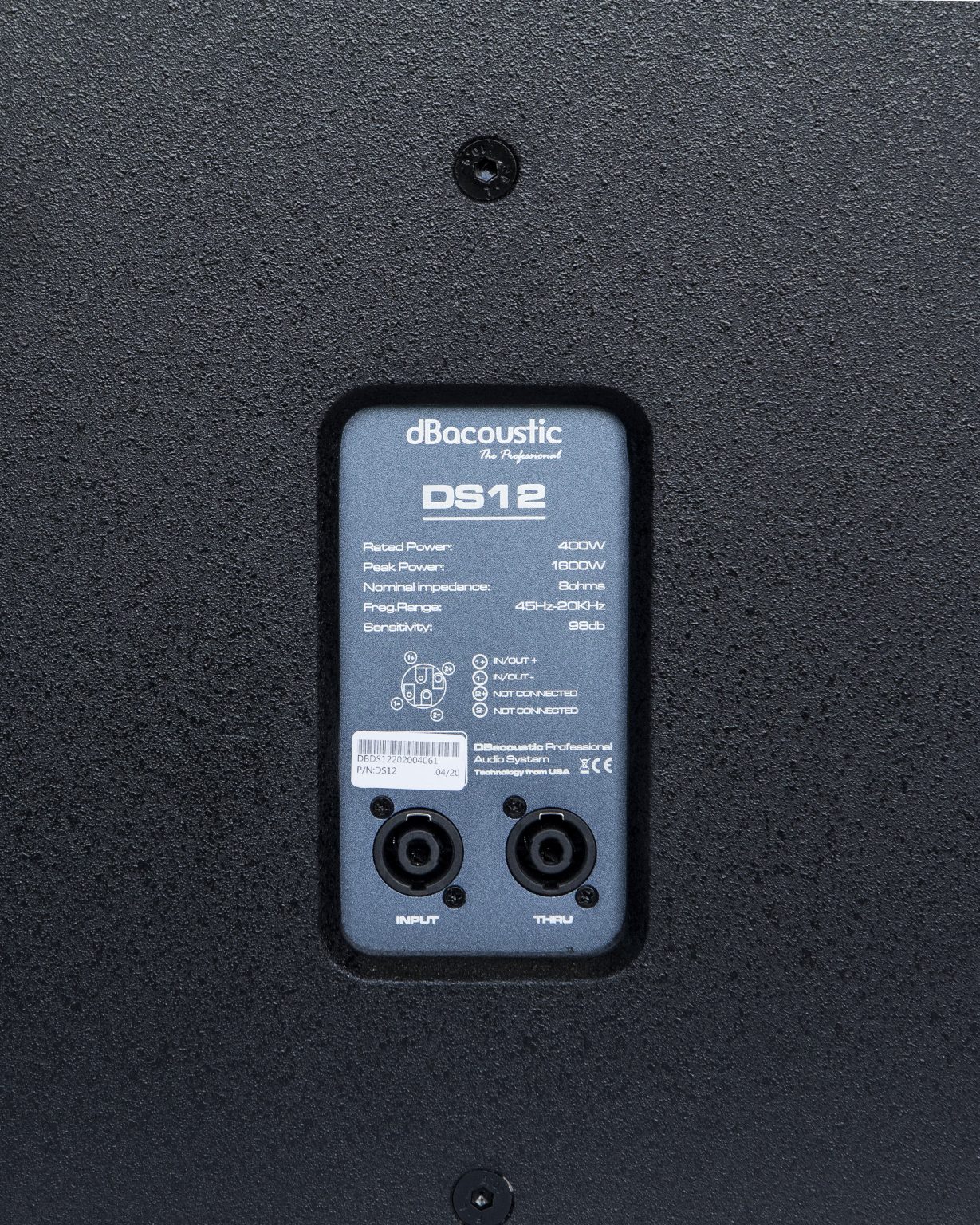 Mặt trước được bảo vệ bởi lớp Ê căng thép 16 gauge được sơn phủ tĩnh điện chống gỉ, chống lại các tác động cơ học. Logo dBacoustic có thiết kế vô cùng nổi bật mang đến sự sang trọng. Phía sau loa là các đầu kết nối Neutrik Speakon, cổng kết nối này cho tín hiệu tốt và độ bền cao.