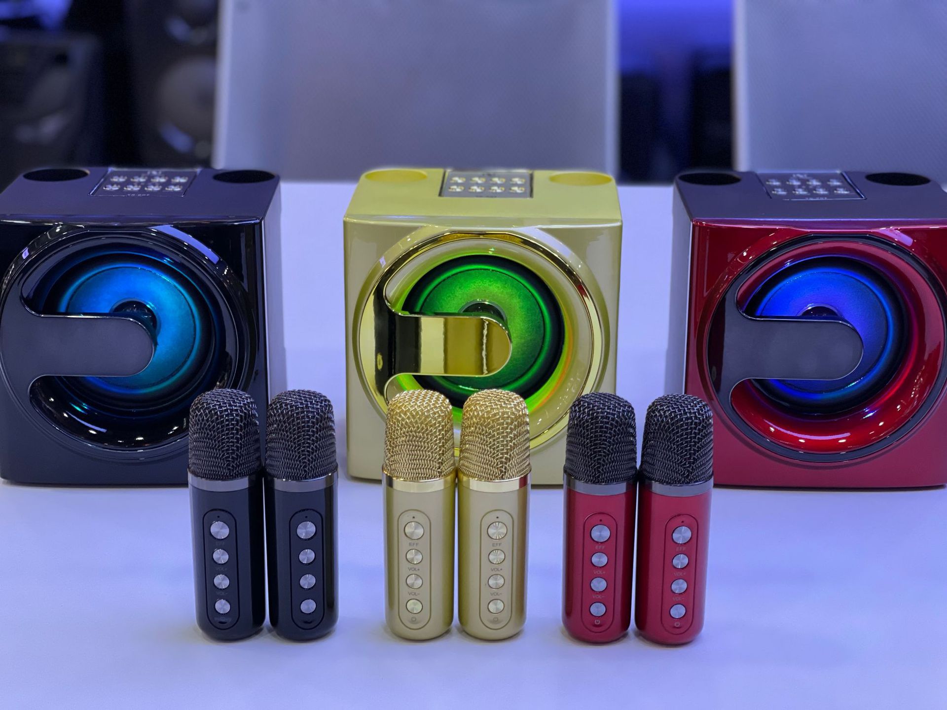 - Đi kèm với thiết bị loa là bộ đôi micro cùng tông màu có thiết kế thời thượng. Micro nhẹ hơi, dễ hát giúp bạn cảm nhận trọn vẹn từng cung bậc cảm xúc. Tích hợp pin sạc dung lượng cao cho phép bạn sử dụng liên tục 4 – 6 tiếng. Khi hết pin có thể dễ dàng sạc lại với cổng sạc 5V cho nên bạn không cần phải lo ngại về tình trạng gián đoạn giữa chừng do hết pin.