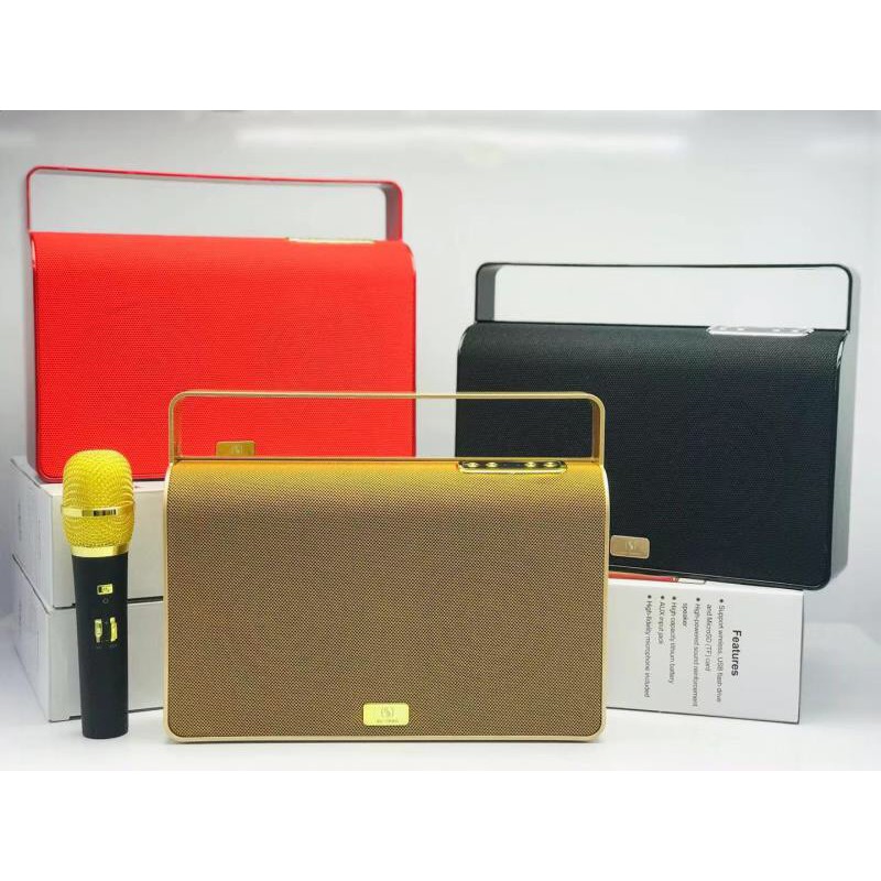 được thiết kế có kèm theo micro không dây để bạn hát karaoke rất tiện khi cần vui chơi di chuyển bên ngoài. Với âm thanh lớn, chất lượng, hiệu ứng loa tốt, âm bass tuyệt vời cho các bạn tha hồ nghe những bài nhạc yêu thích ở bất cứ nơi đâu bạn muốn. Hệ thống được thiết kế kèm các chuẩn kết nối USB, thẻ nhớ TF và cổng AUX để phát các tệp MP3 từ phương tiện bên ngoài (bộ nhớ flash USB hoặc bộ nhớ microSD).