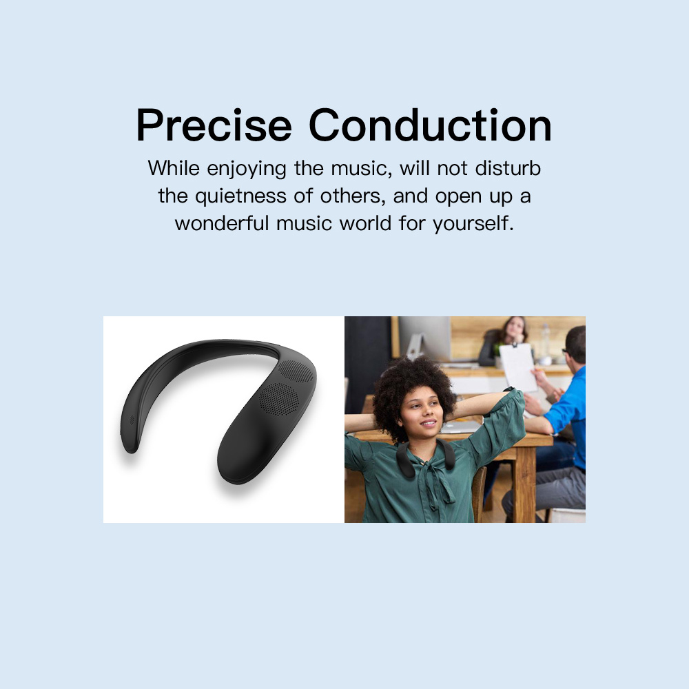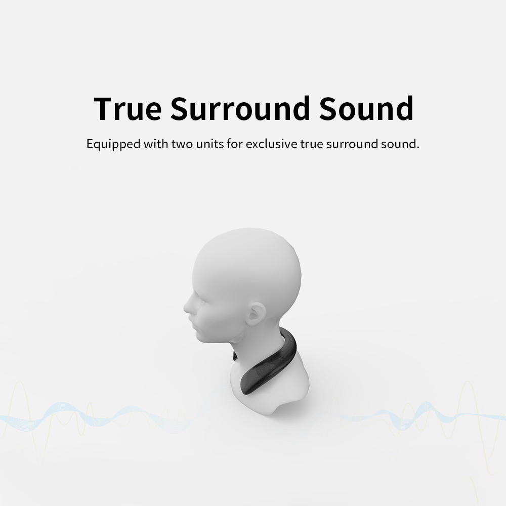 This neck-mounted bluetooth speaker separates the left channel and right channel, together with stereo sound effect, it can help you locate position accurately.