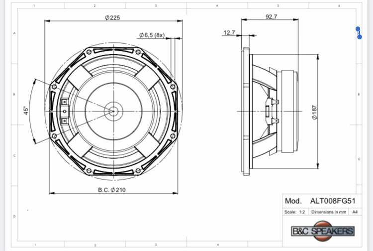 THÔNG SỐ KỸ THUẬT LOA BASS RỜI B&C SPEAKERS 8FG51