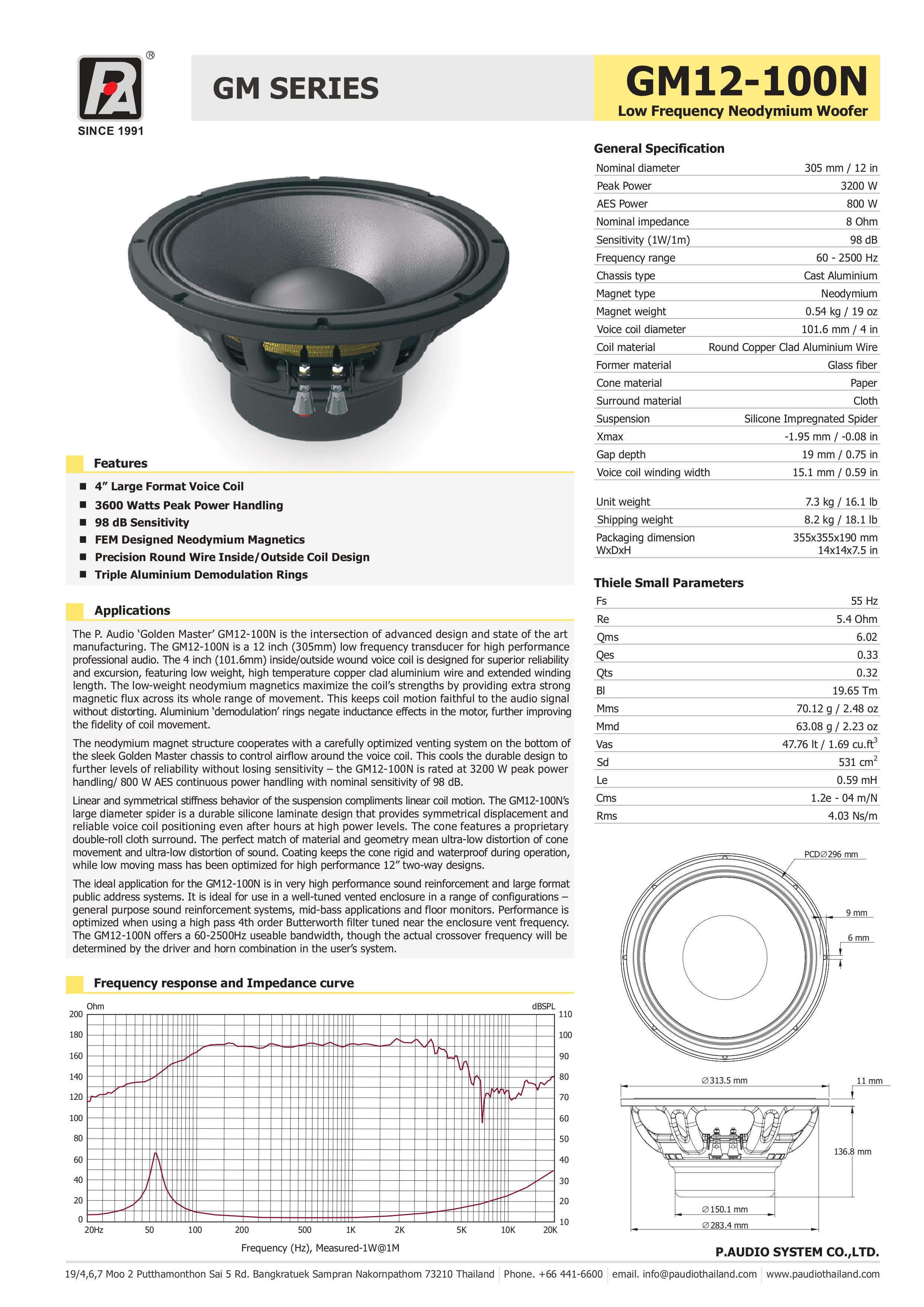 ✨LOA RỜI PAUDIO 3 TẤC TỪ NEO GM12-100N (12") (1 cặp) – Hàng Chính Hãng