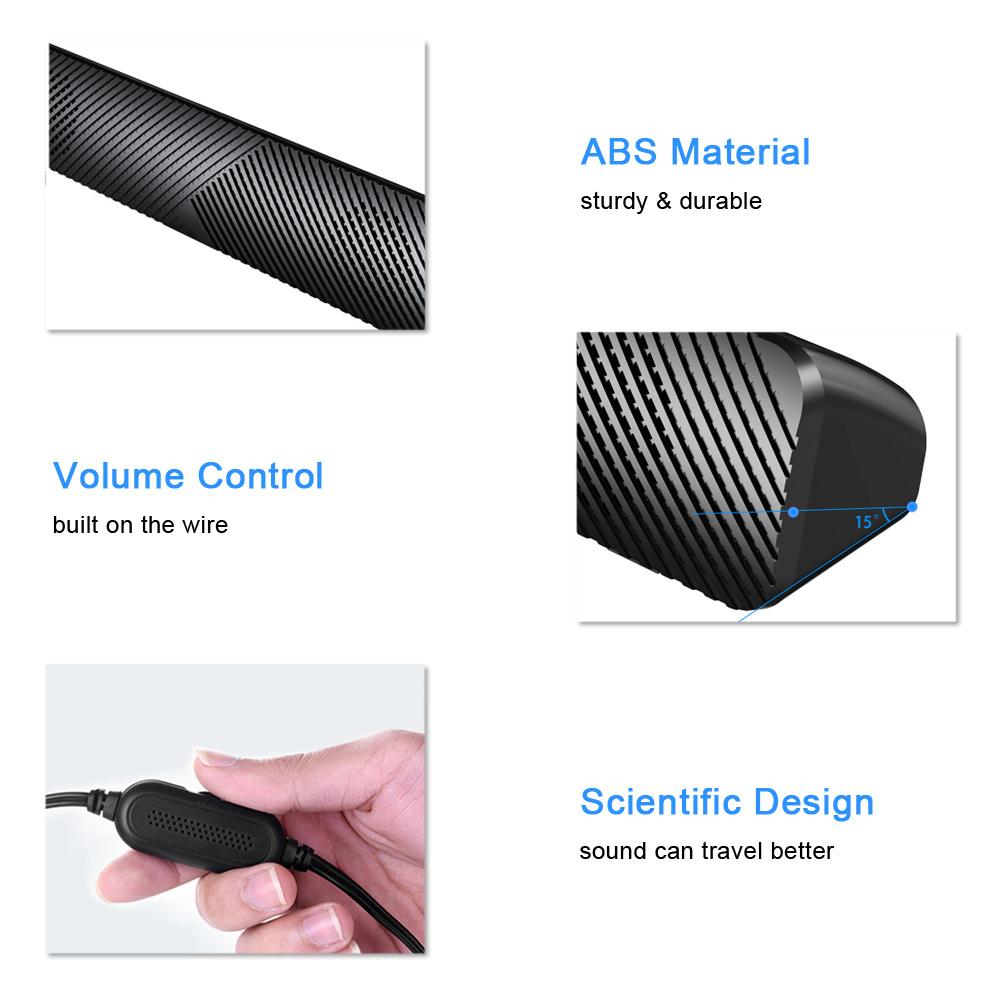 Features: Comes with 2*5W double horns, surround sound and the deep bass matched, bringing you high-quality music. Compatible with computer, mobile phone, TV, tablet, game consoles and other 3.5mm audio devices. Independent volume knob, convenient
