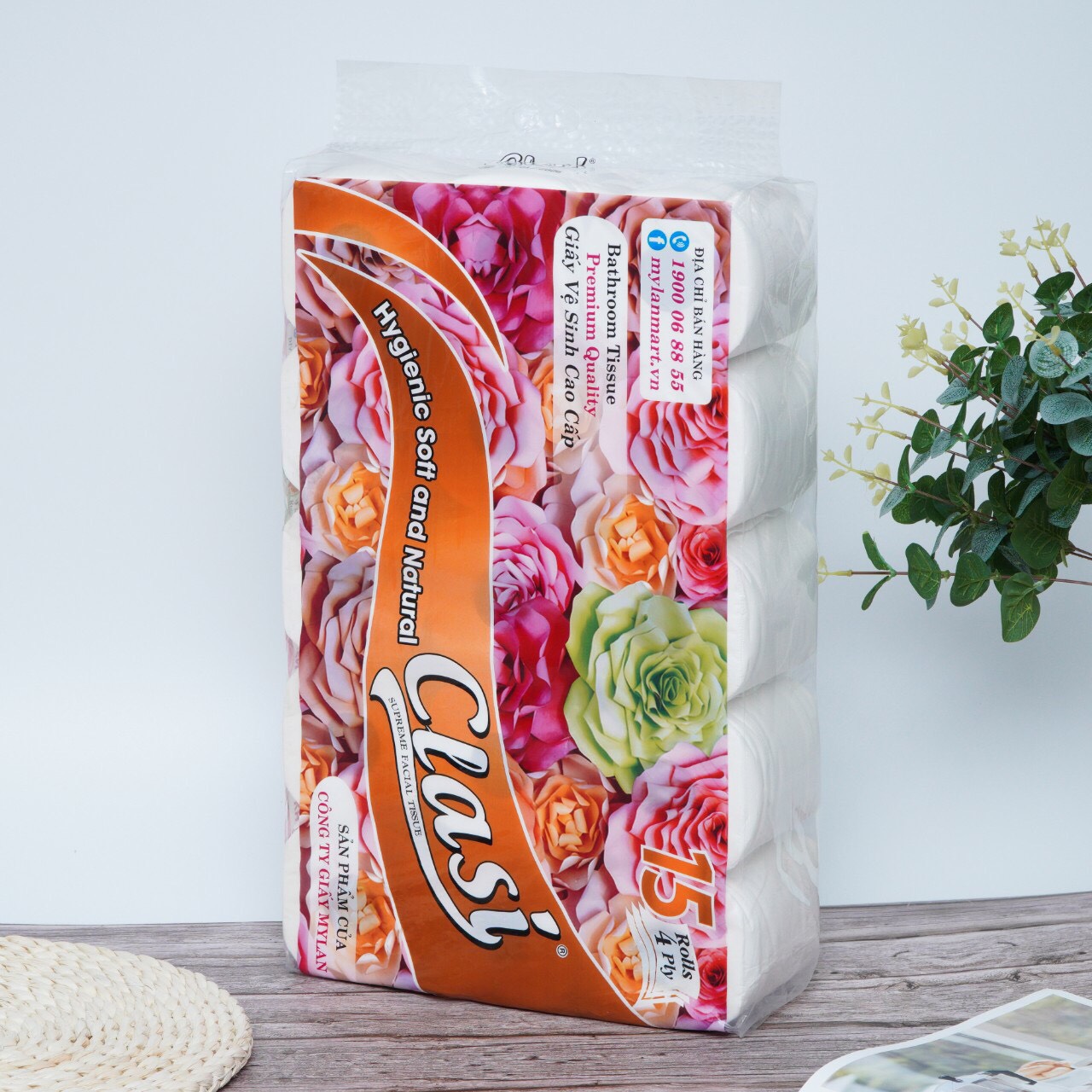 ✨LỐC 15 CUỘN GIẤY VỆ SINH CAO CẤP MYLAN CLASI HOA HỒNG 4 LỚP MỀM MẠI