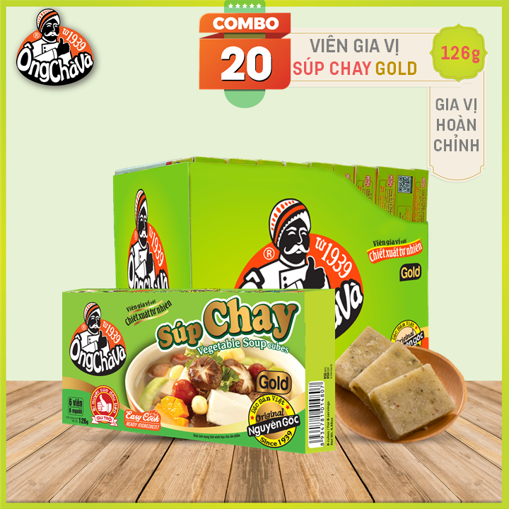 Viên gia vị Súp Chay 126gr là loại gia vị dạng viên cô đặc, giúp nước dùng của món Súp Chay đậm đà, thơm ngon và đúng chuẩn hơn 1. THÔNG TIN SẢN PHẨM