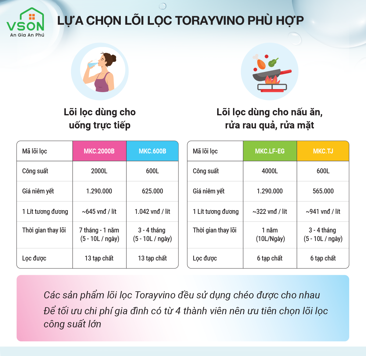 - Nhiệt độ nước khi sử dụng qua máy là < 50°C và lõi lọc < 35°C Lựa chọn lõi lọc Torayvino phù hợp Hướng dẫn thay lõi lọc Torayvino Khi nào nên thay lõi lọc Torayvino MKC.2000B